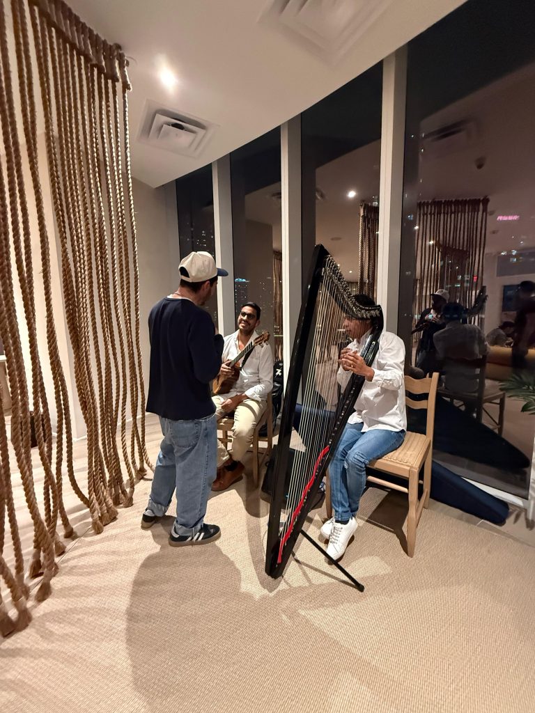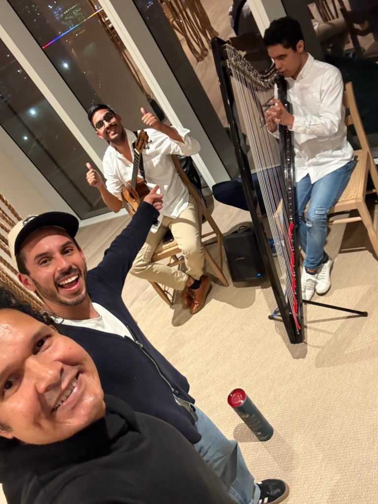 Live Folk Music: Attendees enjoyed the sounds of the harp (Jose Manuel Melo) and the cuatro (Moises Rojas), played by talented Venezuelan musicians and their emblematic instruments, transporting residents through the traditional rhythms of Venezuela.