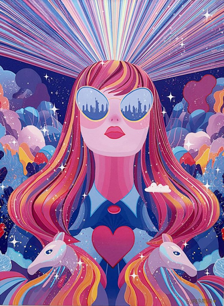 Acrylic on handmade white birch panel // 3D with glasses